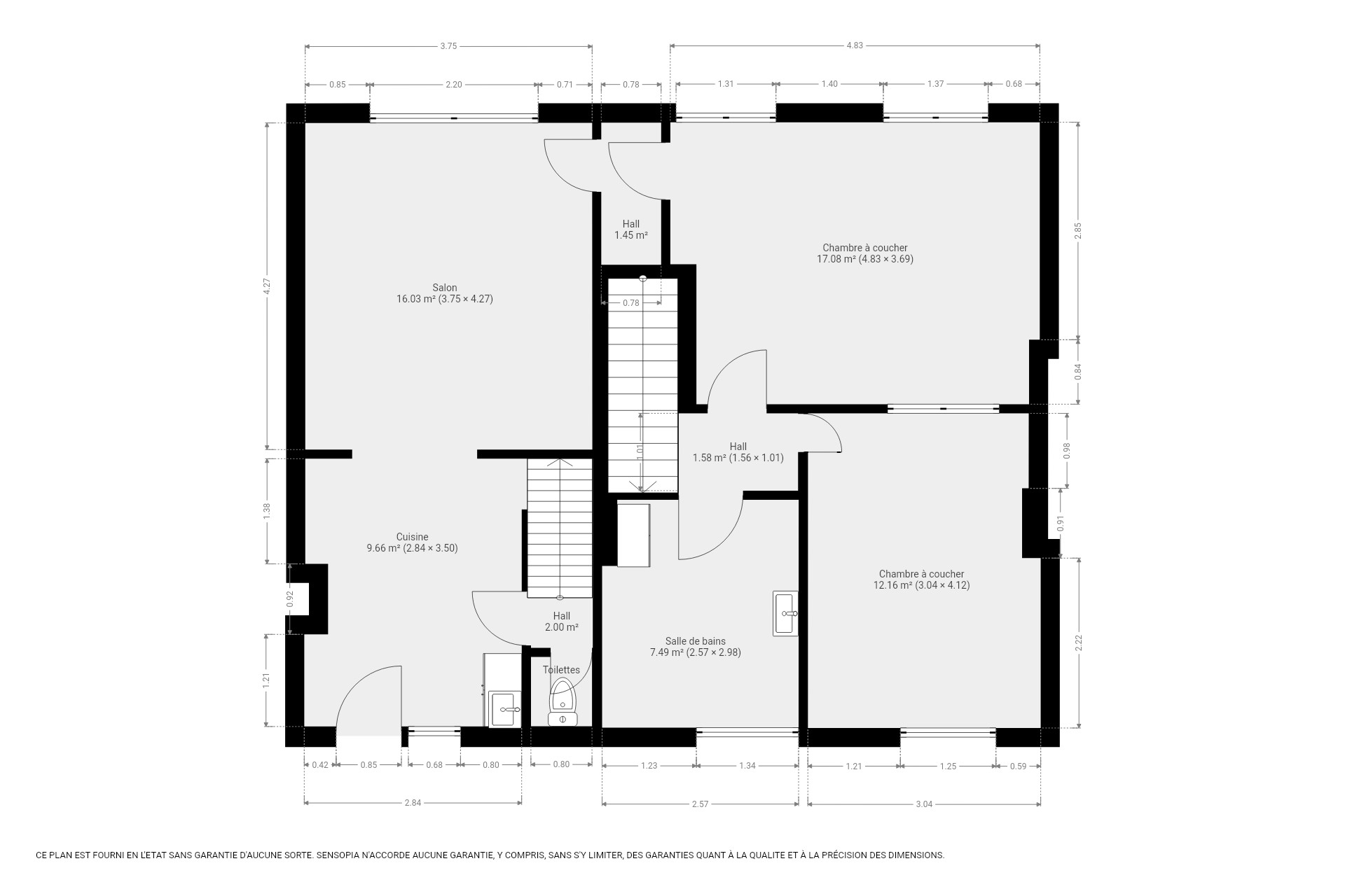 - Trois grandes chambres confortables (18 m², 17 m² et 12 m²) ;
